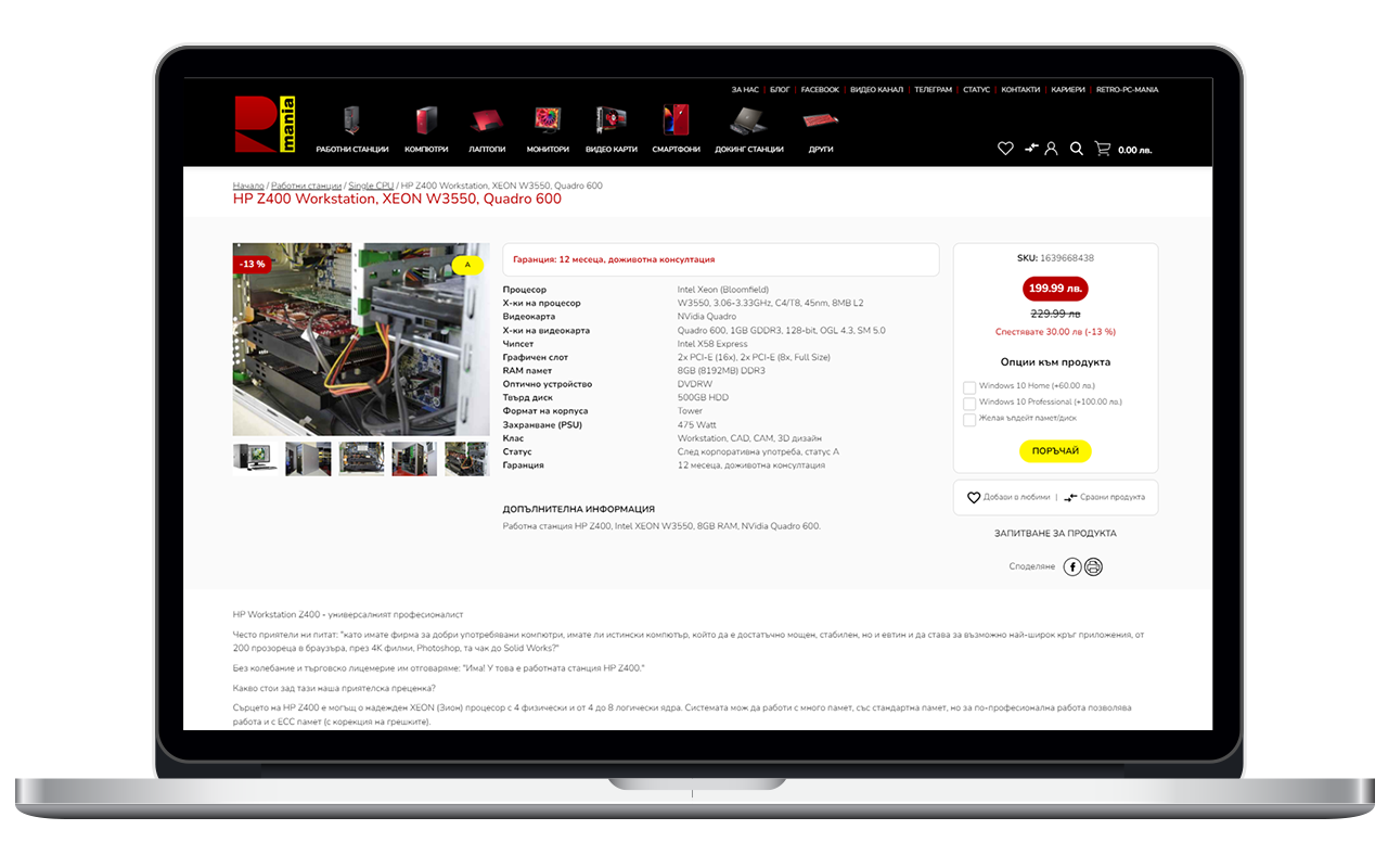 Оналйн магазина е базиран на наша авторска платформа Humge Orchestra, позволяваща управление на 99% от съдържанието без потребителя да притежава специални умения. Онлайн магазин без месечни такси скрити разходи.
