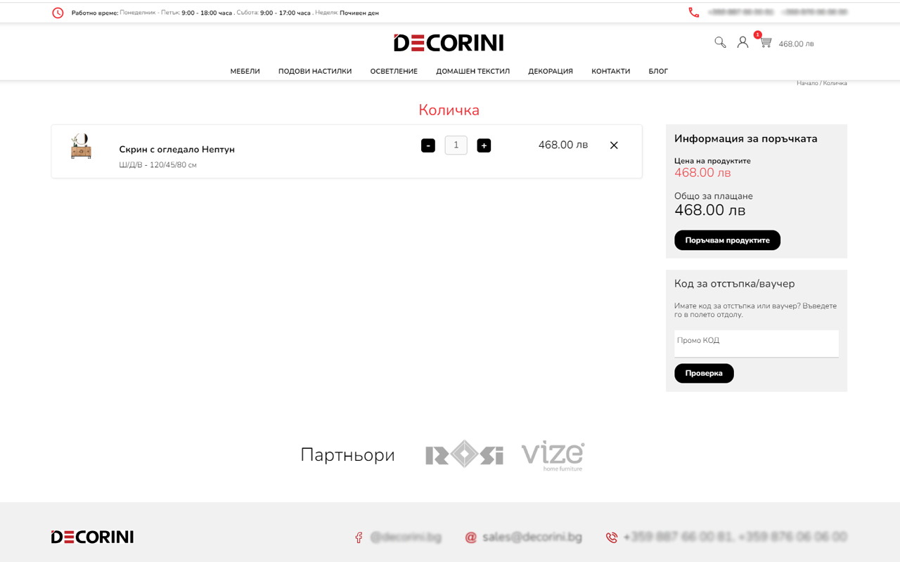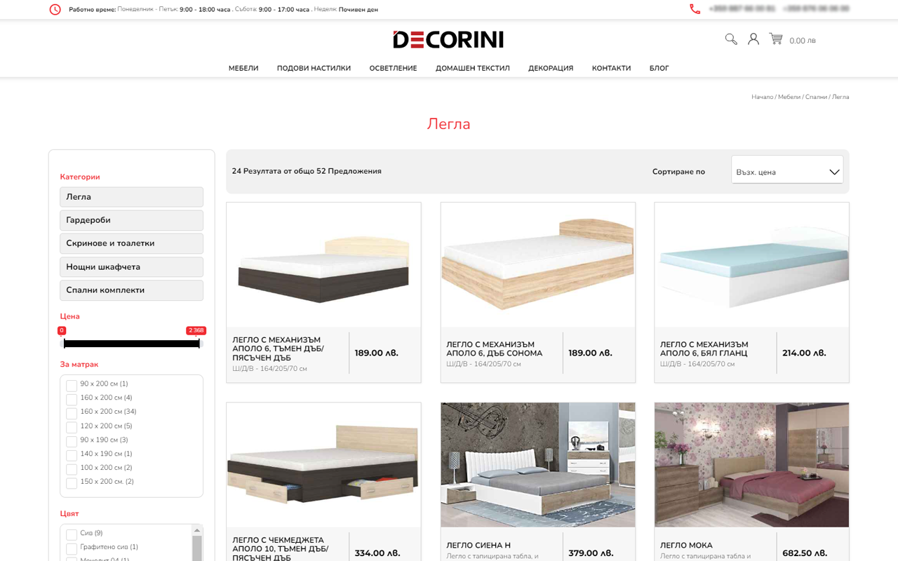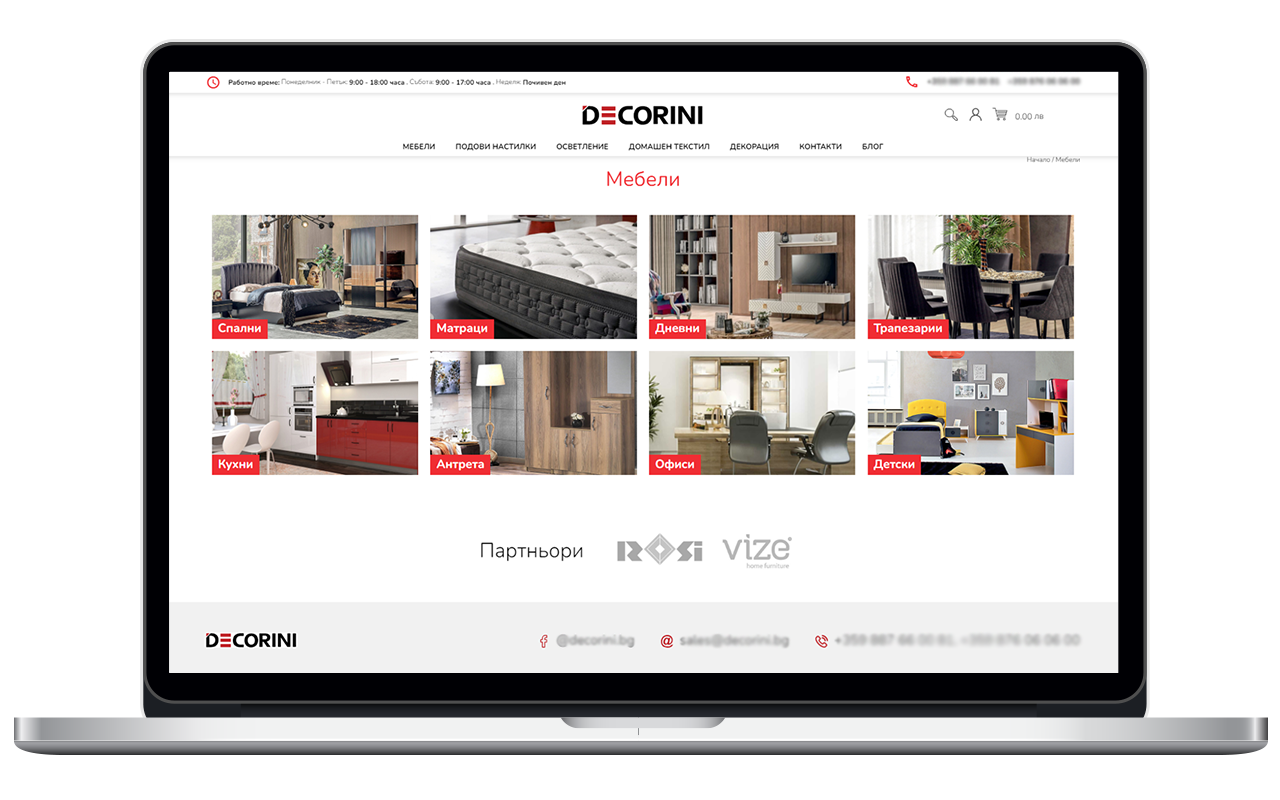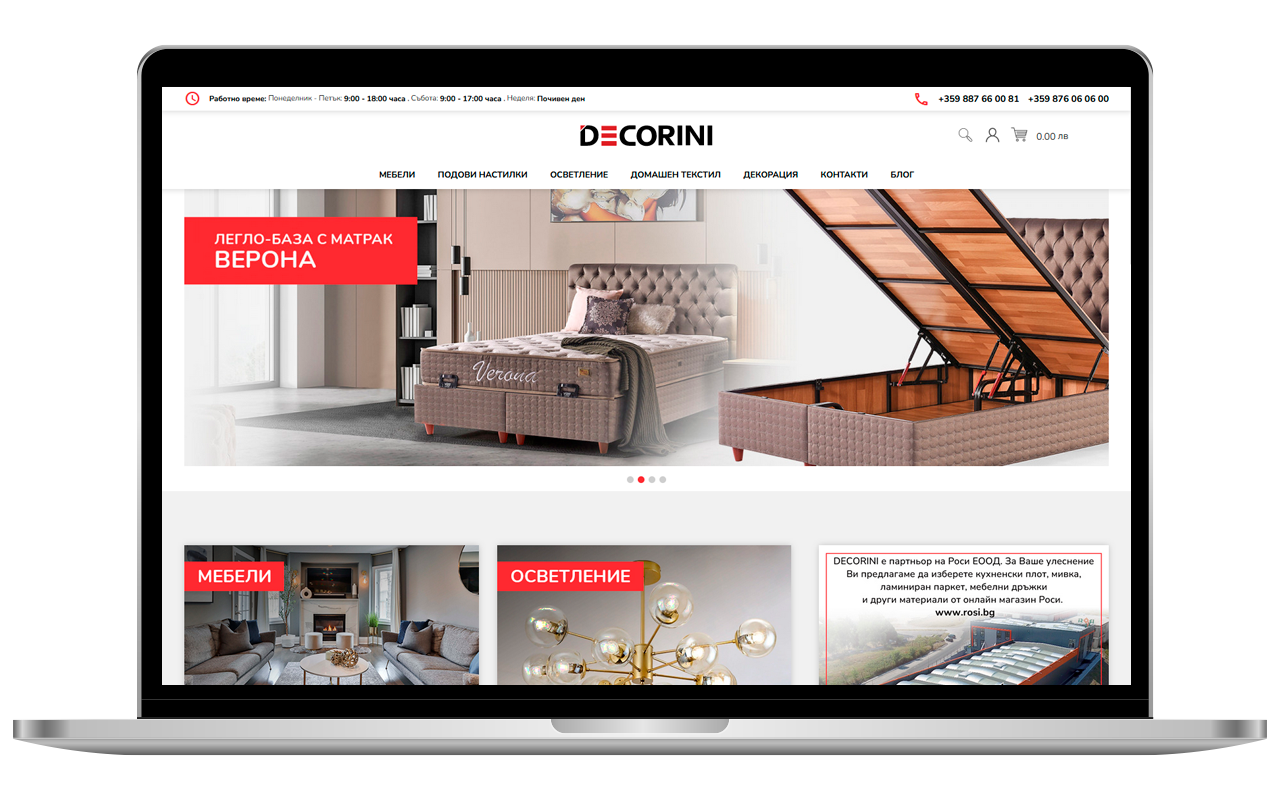 Продажба на мебели, подови настилки и аксесоари за дома и офиса