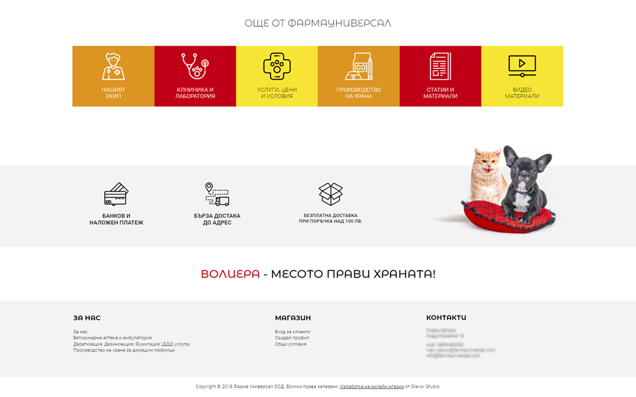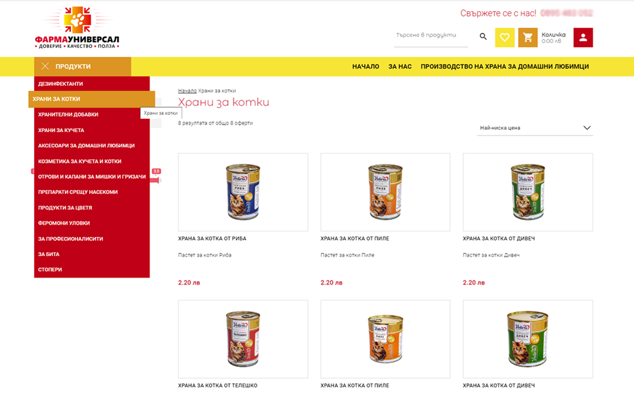 Храни за кучета и котки. Отрови и капани за гризачи и паразити.